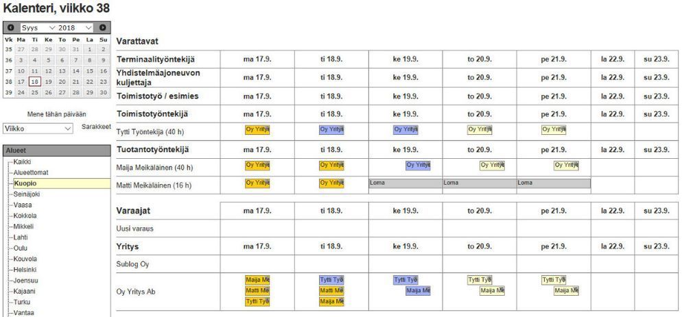 Kuvassa asiakkaallemme rakentamamme työntekijäpooli. Varausjärjestelmä mahdollistaa työntekijöiden varaamisen 24/7.